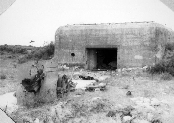 Vue de la batterie lourde de Pen ar Ménez : le canon été sorti de sa casemate pour tirer sur les Américains à Tal ar Croaz puis sabordée à la reddition, n° 137, rapport Pinczon du Sel. Livre IV, vers 1947, Service Historique de la Marine, BrestImmatriculation