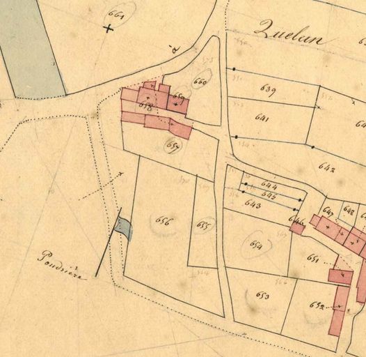 Signal de la poudrière de Quélern, extrait du cadastre ancien dit Napoléonien, vers 1840, Archives Départementales du FinistèreImmatriculation