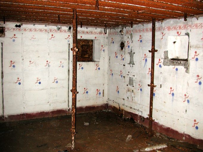 Vue de l'abri à personnel de type 128 des Quatre Pompes : il y a encore peu de temps les lits superposés étaient en placeImmatriculation