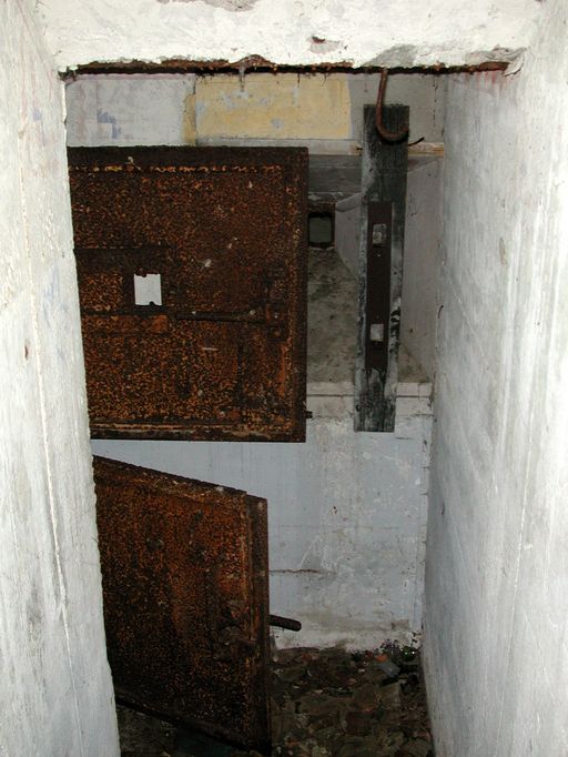 Vue de l'abri à personnel de type 128 des Quatre Pompes : porte d'entrée blindéeImmatriculation