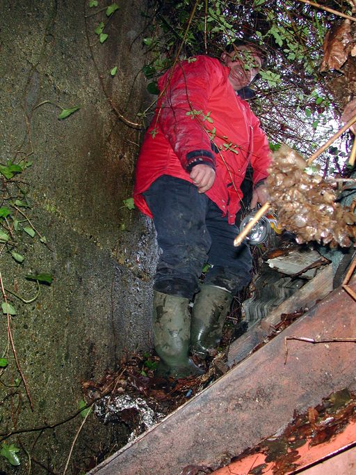 Vue de la casemate de type 515 de Maison Blanche : la descente dans l'ouvrage se fait au milieu des orduresImmatriculation
