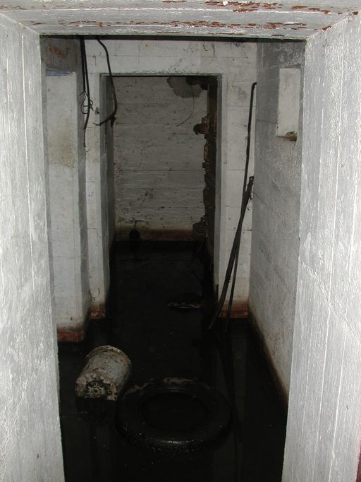 Vue de la casemate de type 515 de Maison Blanche : sas d'entrée, au fond le périscopeImmatriculation