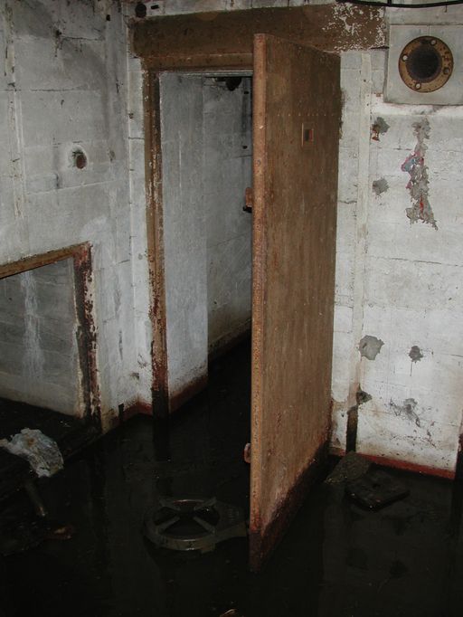 Vue de la casemate de type 515 de Maison Blanche : la porte blindée de la chambre de troupe est toujours en placeImmatriculation