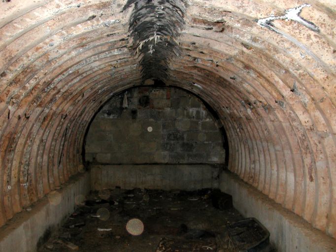 Vue de l'abri type tôle métro pour le groupe électrogène de la batterie antiaérienneImmatriculation