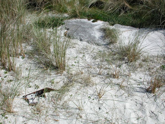 Vue de l'encuvement pour canon de 50 mm ensablé se trouvant aujourd'hui au pied de la duneImmatriculation