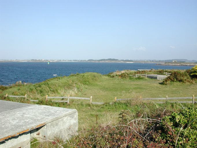 Vue de l'ensemble fortifié de Penn Enez. En arrière-plan à droite, le fort CézonImmatriculation