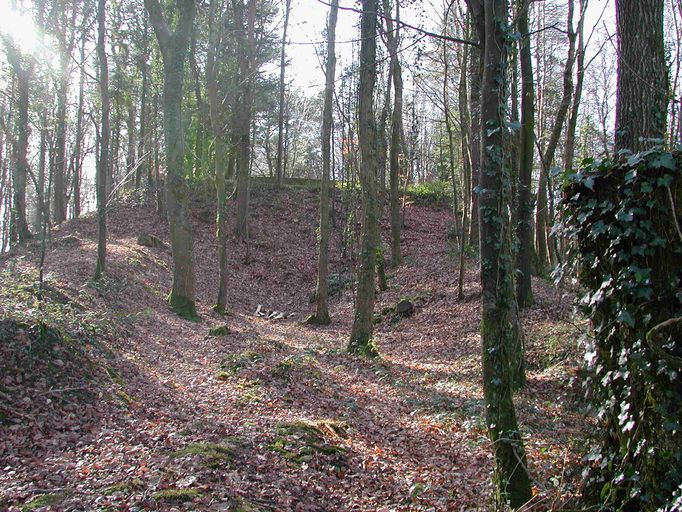 Vue de situation : un talus ou levée de terre protège l'arrière de l'édifice (état en 2003)Immatriculation