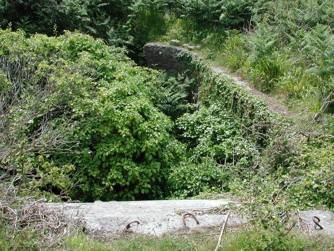 Landéda, île Cézon : abri pour un groupe de type 501 du fort Cézon, tranchée d'accès du blockhaus. Elle est envahie par la végétationImmatriculation