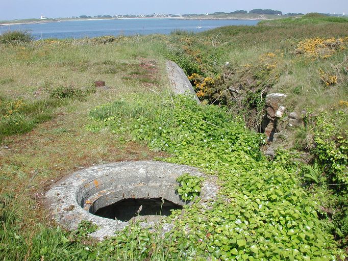 Landéda, île Cézon : vue du Tobrouk de l'abri de type 621. Le Tobrouk doit servir à la défense rapprochée. Situé en dehors du fort (quoique relié par des tranchées bétonnées), cet abri de type 621 doit pouvoir servir de réduit à 10 soldatsImmatriculation