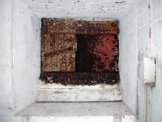 Landéda, île Cézon : abri de type 621, détail du créneau blindé de défenseImmatriculation