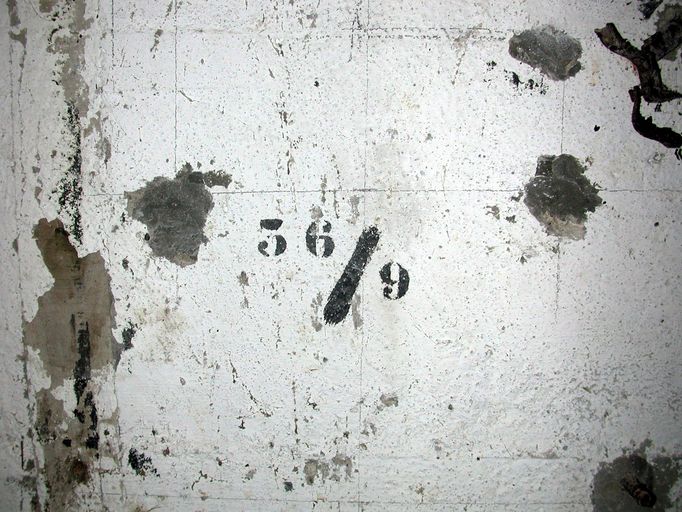 Landéda, île Cézon : abri de type 621. Le numéro de l'ensemble fortifié : "A 36" et le numéro du blockhaus : "9" sont peints au-dessus du boitier de connexion téléphonique (disparu)Immatriculation