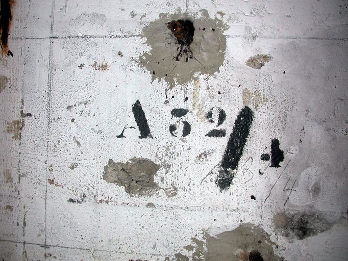 Vue de l'un des marquages dans un des bunkers de Énez Terc'h (état en 2002)Immatriculation