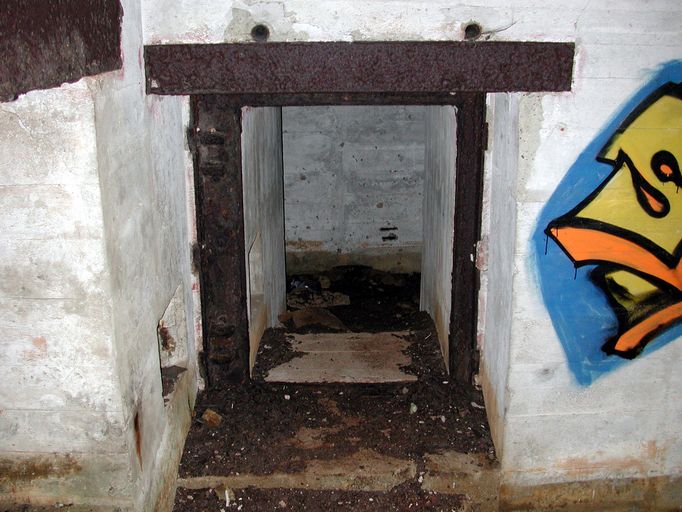 Une petite porte blindée reliait le couloir à la chambre de tirImmatriculation