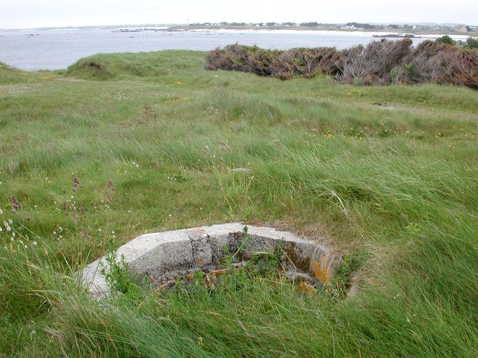 Vue de la position circulaire avec en arrière-plan, la côte rocheuse de Kerlouan (état en 2003)Immatriculation