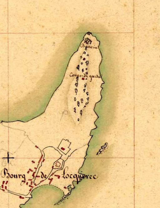 Plan de situation de la batterie et du corps de garde de la pointe du Château, extrait du cadastre ancien, 1826, Archives départementales du FinistèreImmatriculation
