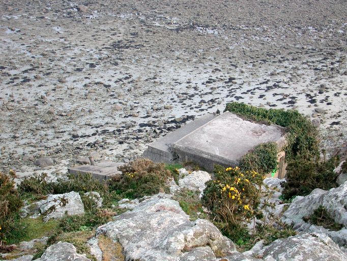 Vue générale du bunker depuis le poste d'observation et de tir sud situé au sommet du rocher de l'îlot Sainte-Anne (état en 2003)Immatriculation