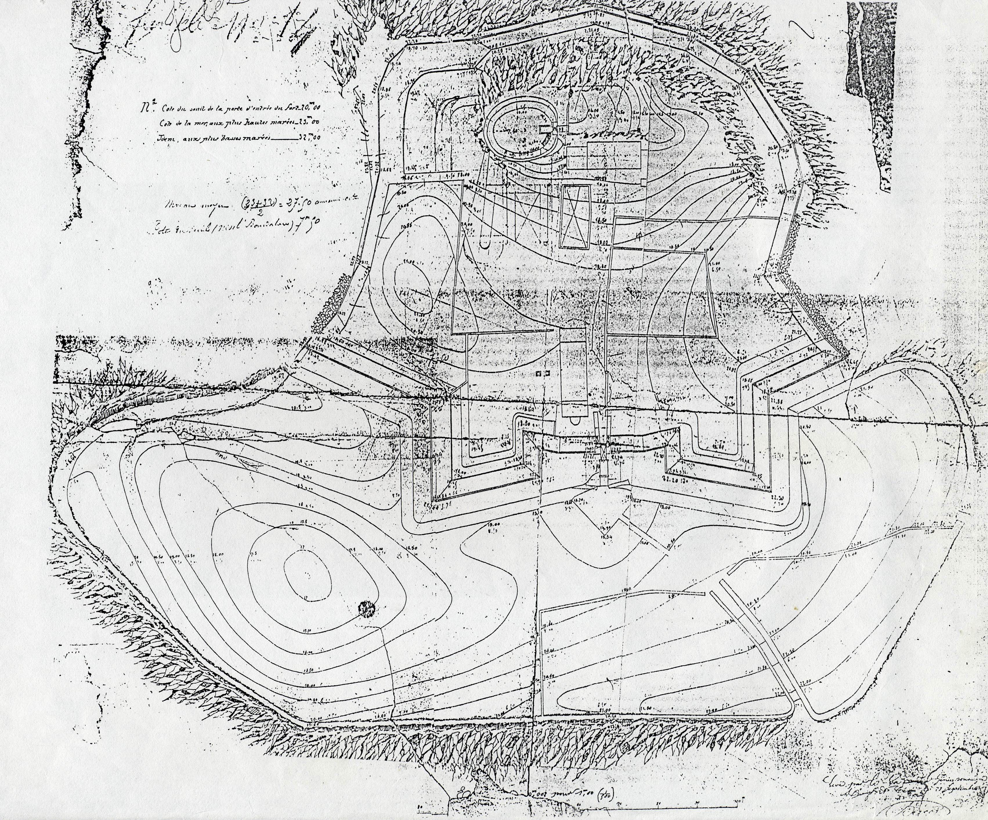 Plan topographique du fort Cézon, 1857, Service Historique de l'Armée de Terre, Vincennes, série A1, Places abandonnées fort Cézon (association Cézon, document n° 27)Immatriculation