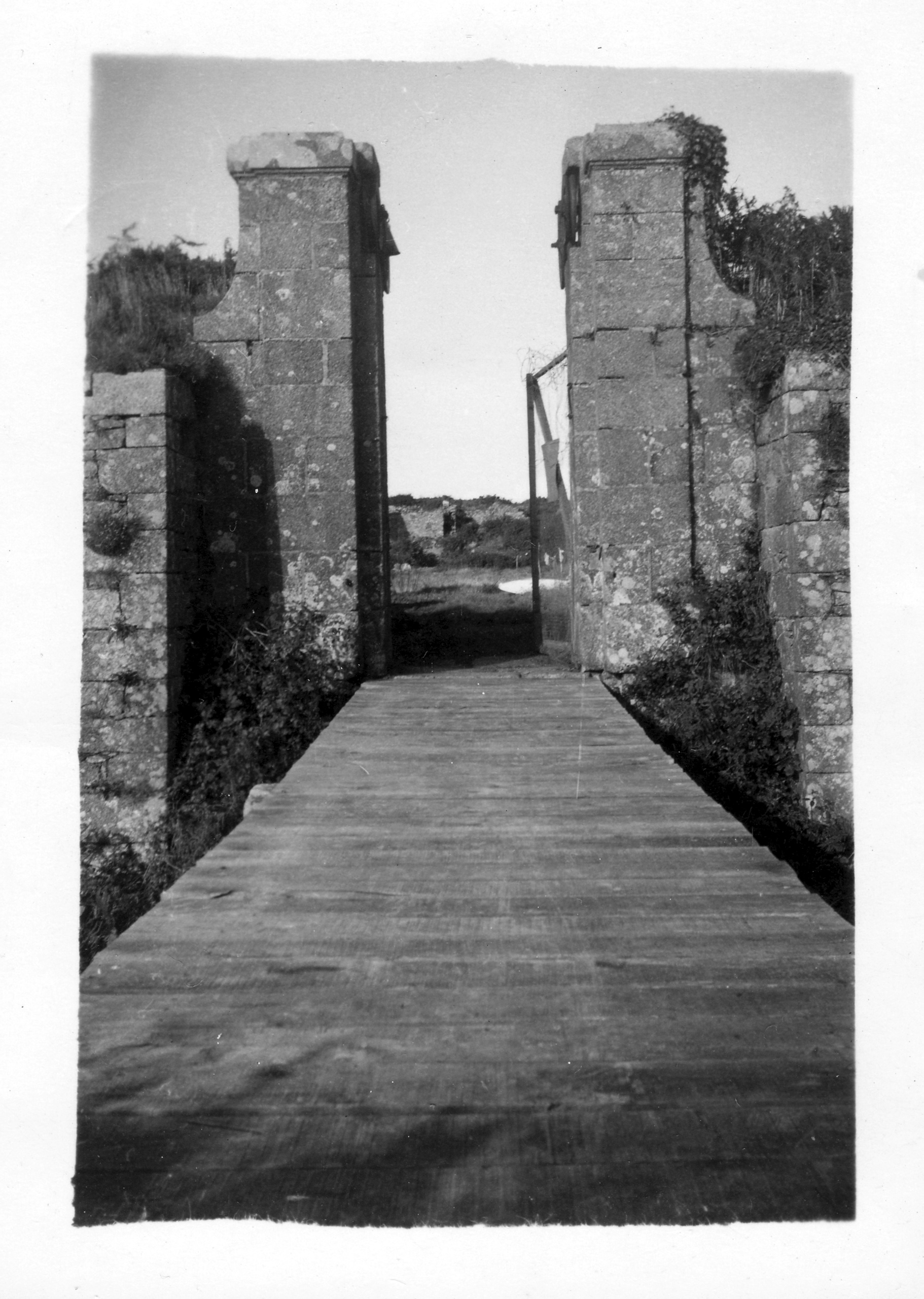 Landéda : fort Cézon, vue de la porte monumentale et du pont dormant en bois, photographie du milieu du 20e siècle (?) (collection association Cézon)Immatriculation