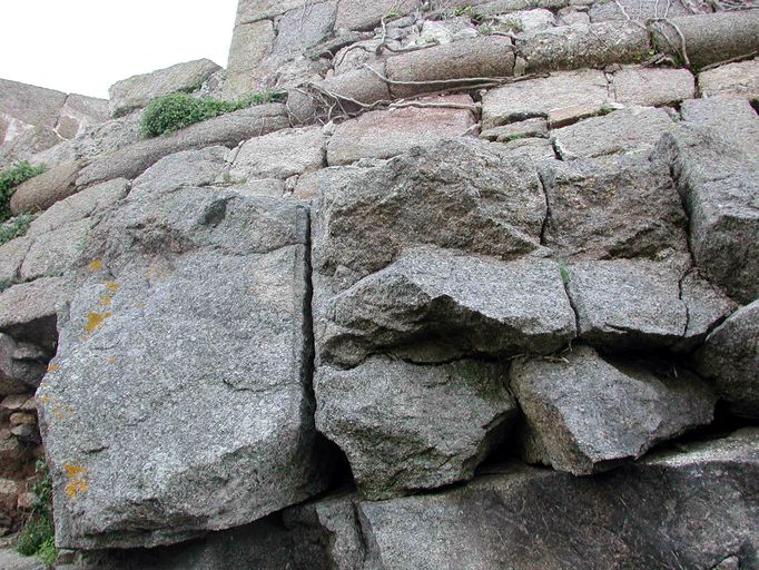 Vue de la tour d'artillerie du fort Cézon : effondrement de la tour côté Est. Accélération du processus d'érosion naturelle du granite par le déroctage à la mineImmatriculation
