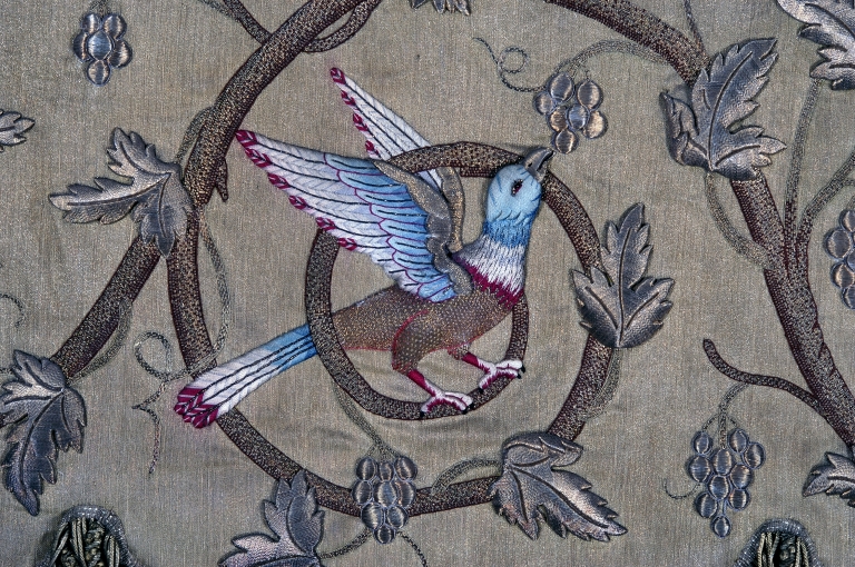 Décor latéral d'un élément : oiseau picorant des raisinsImmatriculation