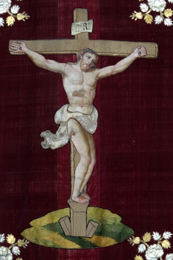 Bannière de procession paroissiale : Christ en croix, Saint Médard,