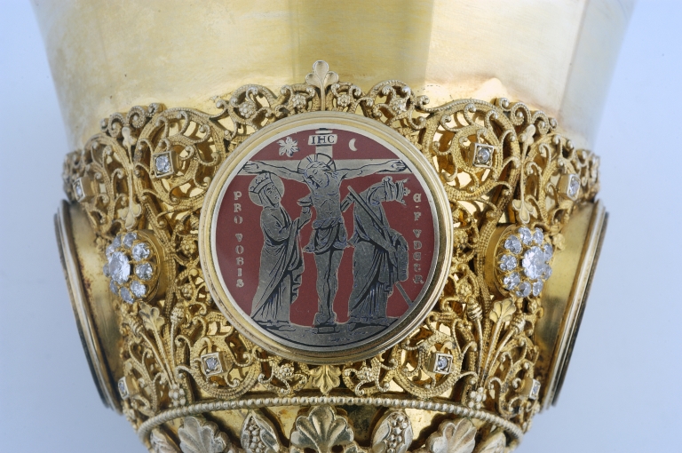 Fausse coupe du calice, décor d'un médaillon : Christ en croix entre l'Eglise et la SynagogueImmatriculation