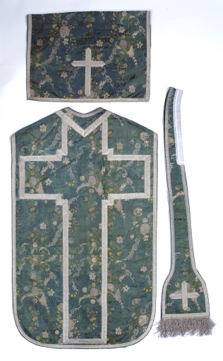 Ornement vert : chasuble, étole, voile de calice,
