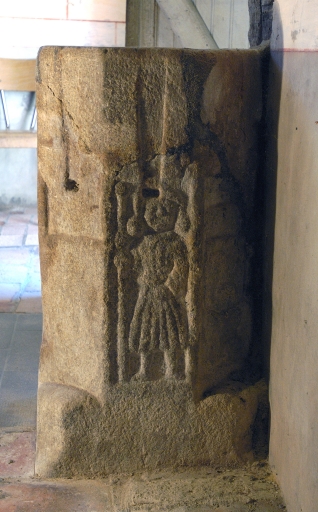 Ancienne mesure à grains, aujourd'hui bénitier sur pied,