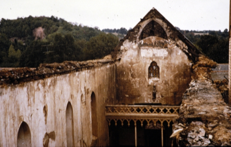 La toiture de l'église abbatiale après l'incendie de 1976Immatriculation