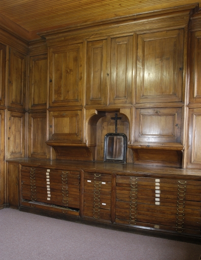 Meubles de sacristie : chasublier, armoires, lambris de revêtement,