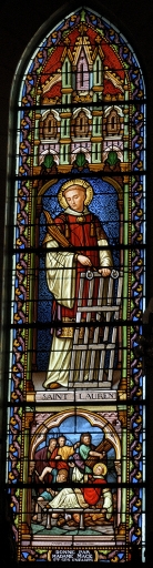Ensemble des 9 verrières à personnages des baies 0 à 8 : Sacré Coeur, Saint Méen, Saint Laurent, Saint Lunaire, Saint Isidore, Saint François d'Assise, Saint Louis de Gonzague, Vie de la Vierge, et des 7 verrières décoratives de la nef,