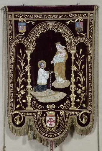 Bannière de procession paroissiale : Bienheureux Louis-Marie Grignion de Montfort, Saint Jean-Baptiste,