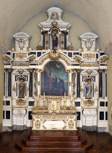 Ensemble du maître-autel : autel, tabernacle, retable, 2 gradins d'autel, 3 degrés d'autel,