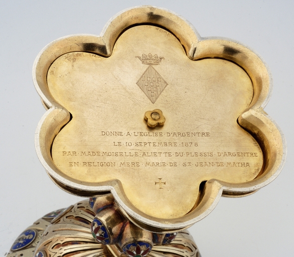 Ciboire : détail de l'inscription sous le piedImmatriculation