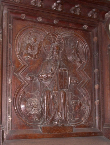 Décor de la cuve : Christ enseignant et tétramorpheImmatriculation