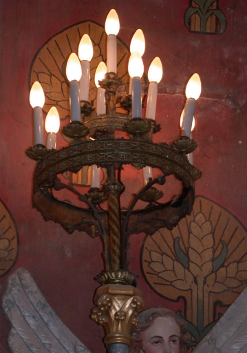 Paire de statues : Anges lampadophores et porte-luminaires,