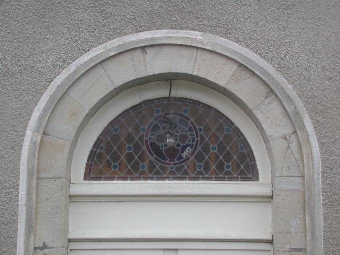 Détail : porte nord avec date portée 1900 sur le vitrailImmatriculation