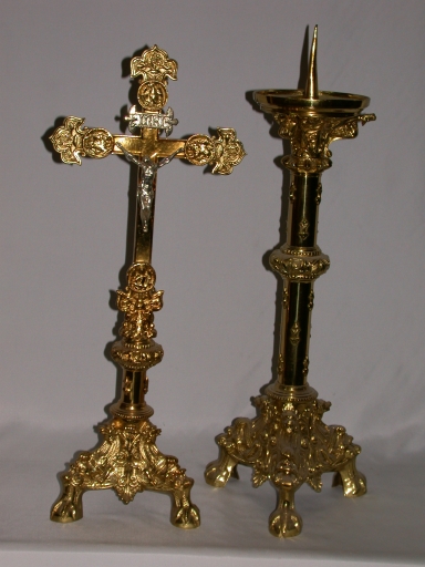 Garniture d'autel 2 : croix d'autel, 4 chandeliers d'autel,