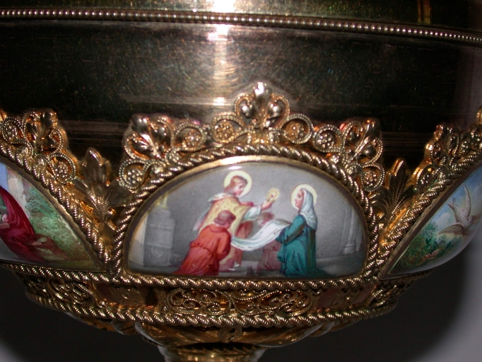 Détail de la coupe : Communion de la Vierge (?)Immatriculation