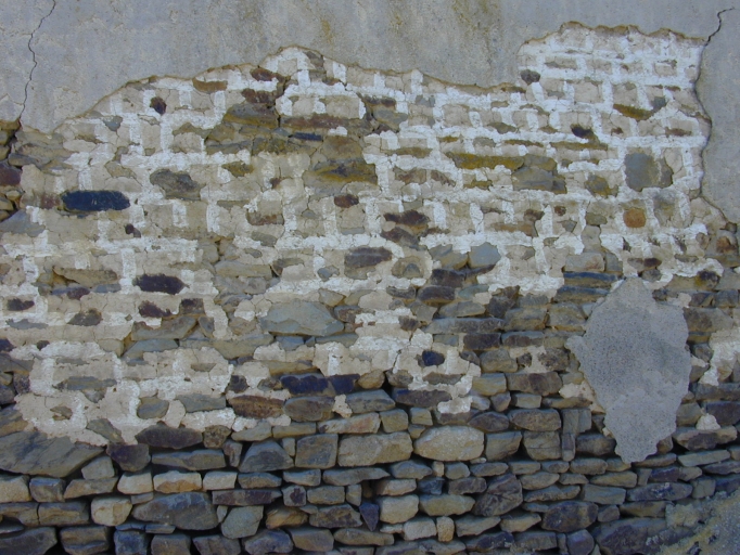 Mur de croupe est, enduit avec faux appareillage : détailImmatriculation