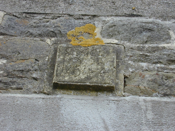 Façade antérieure, pierre gravée d'inscription : détailImmatriculation