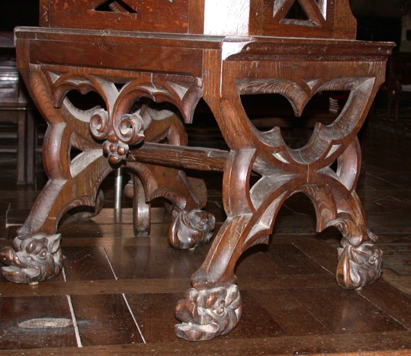 Ensemble d'un fauteuil de célébrant et d'une paire de tabourets d'église,