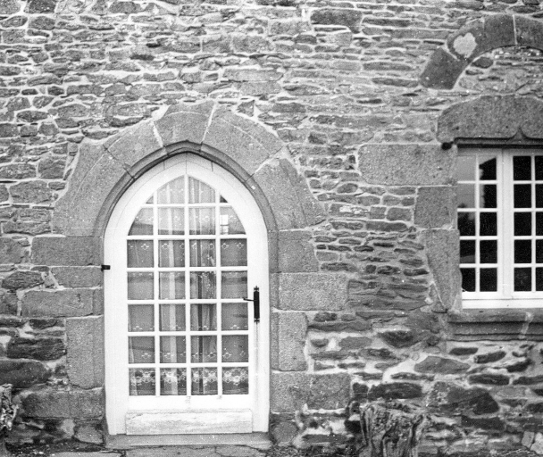 Façade antérieure : détail de la porte en arc brisé (état en 1973)Immatriculation