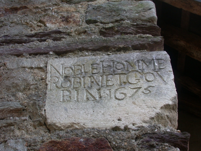 Ancien logis : pierre d'angle avec inscriptionImmatriculation