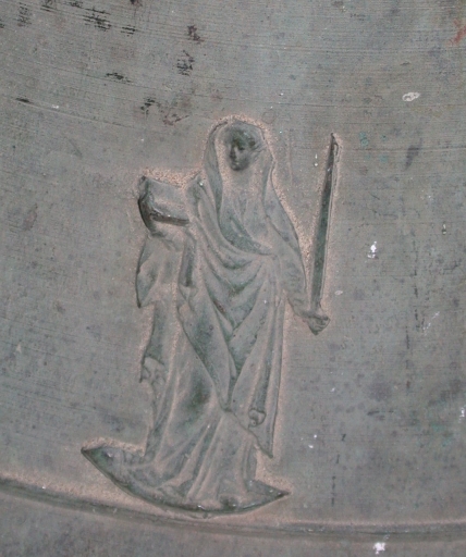 Revers, détail du décor : femme brandissant une épéeImmatriculation