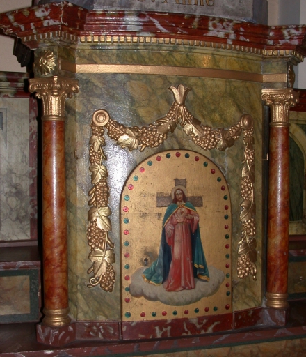 Ensemble de l'autel de sainte Anne : autel, tabernacle, 2 gradins d'autel, exposition,