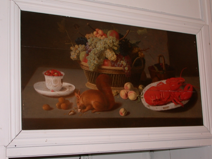 Ensemble de 4 dessus-de-porte : Nature morte, Paysage, Scène dans une cuisine, La déesse de la nuit,