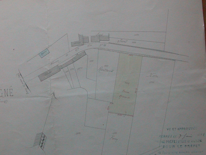 Plan de situation de la mairie [en bleu] en 1883Immatriculation