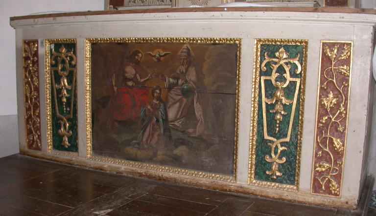 Ensemble de l'autel du Sacré Coeur : autel, tabernacle, 2 gradins d'autel, retable, 2 degrés d'autel,