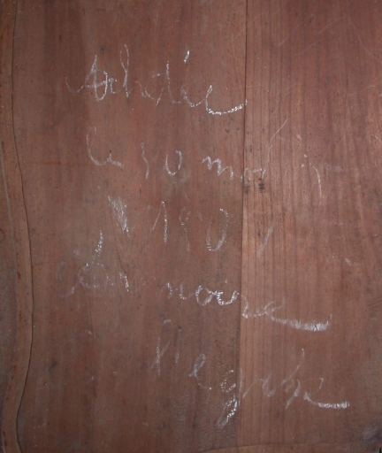 Inscription à l'intérieur du battant droitImmatriculation